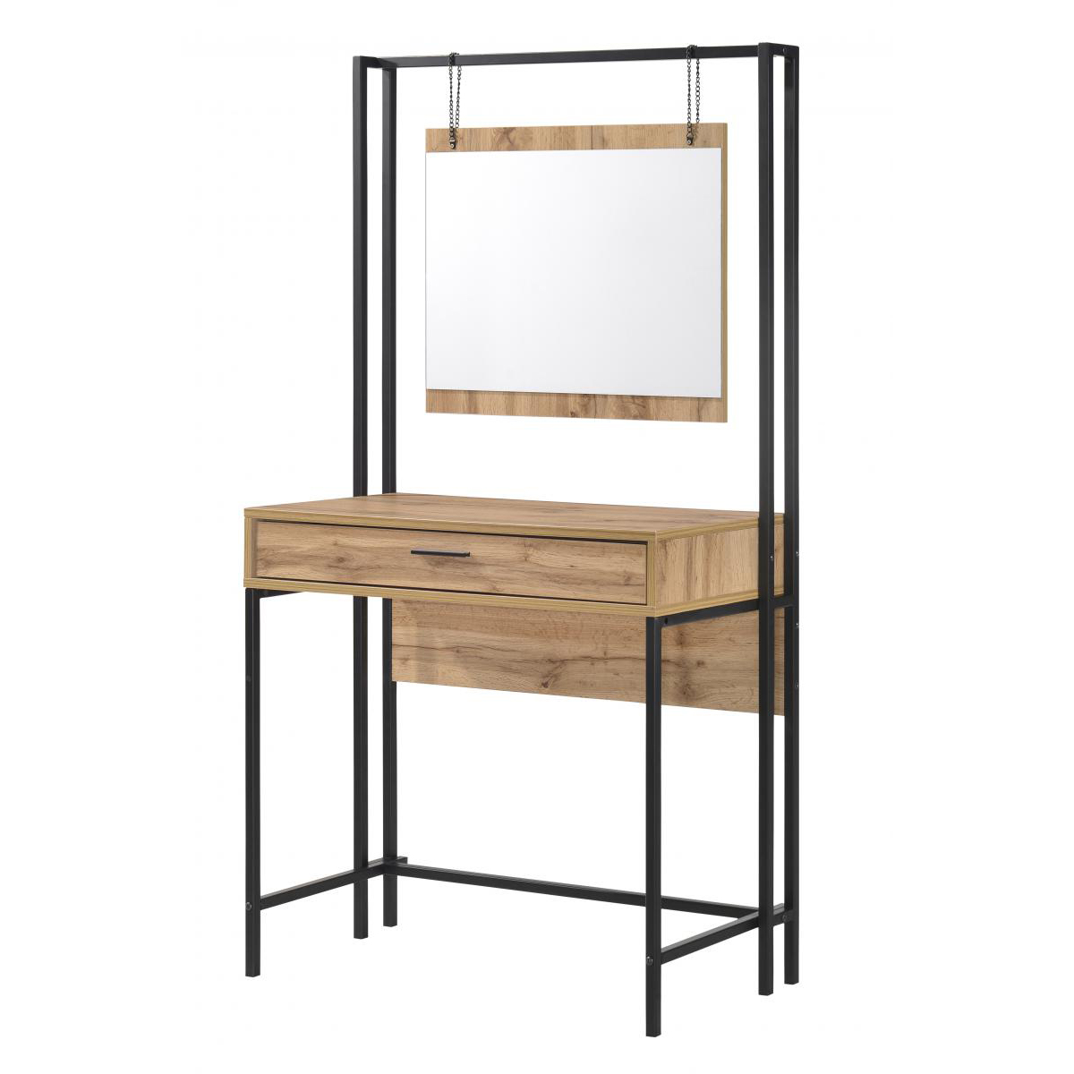 Dresser 1 Drawer with Mirror 838W x 400D x 1500H, Oak Effect, Black Metal Frame
